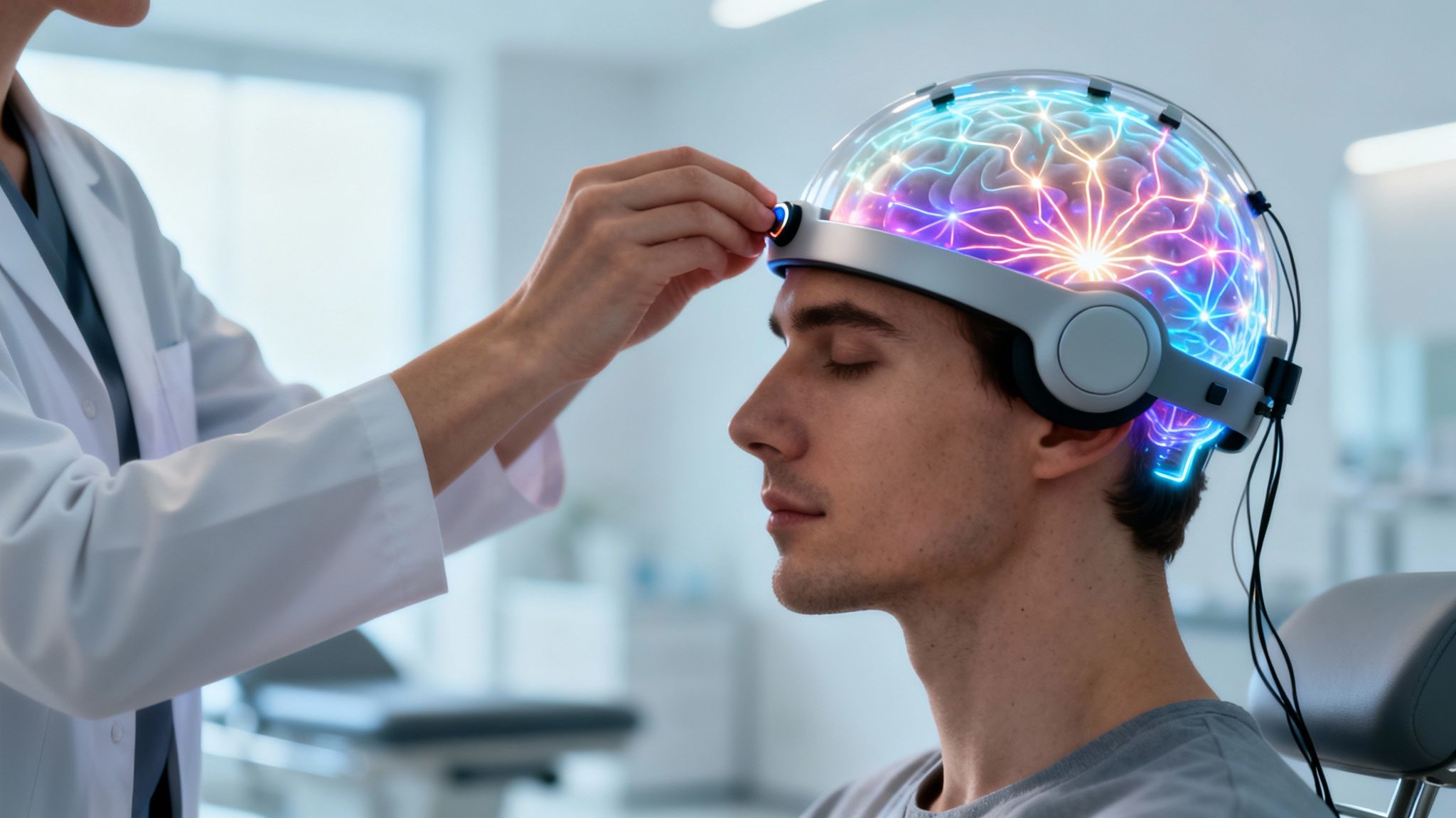 The most common neurotherapy technique is neurofeedback. Think of it as a high-tech mirror that lets you "see" your brain activity as it happens. A therapist places small sensors on your scalp that listen to your brainwaves.